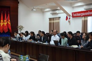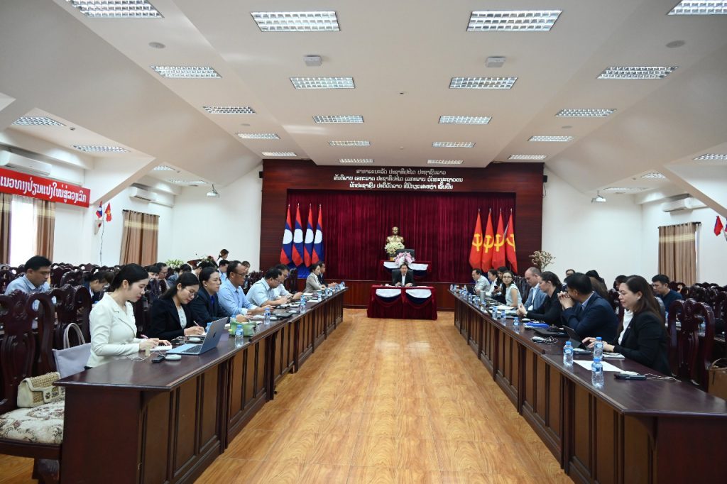 The participants included heads of departments, deputy heads of departments, heads of divisions, and technical staff from various Ministries and central agencies, along with representatives from embassies, development partners, and international organizations based in the Lao PDR, specifically: the United Nations (UN), the European Union (EU), the Swiss Agency for Development and Cooperation (SDC), and GIZ, as well as representatives from NPAs/CSOs, totaling 60 participants.