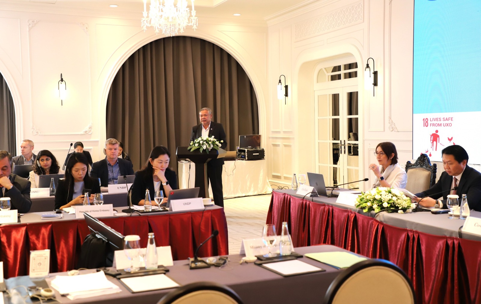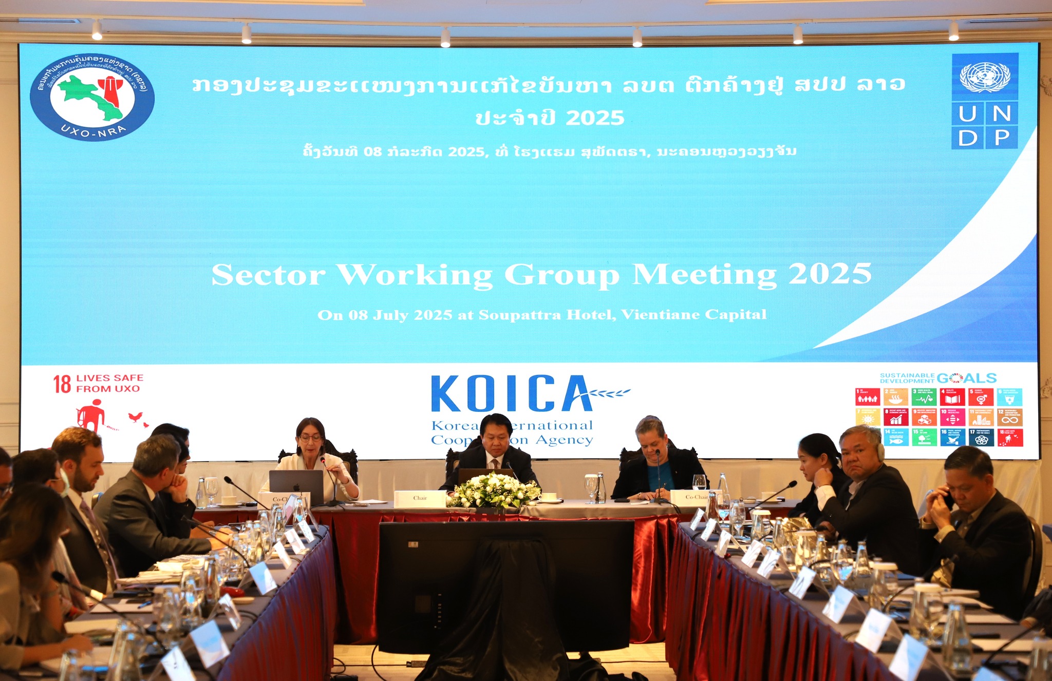The meeting was chaired by H.E. Mr. Anoupharp Vongnorkeo, Deputy Minister of Foreign Affairs (MOFA), and co-chaired by H.E. Ms. Heather Variava, Ambassador of the United States to Lao PDR, and Ms. Martine Thérer, Resident Representative of United Nations Development Programme (UNDP) in Lao PDR – each underscoring the importance of strong partnerships in advancing UXO clearance, risk education, and victim assistance.