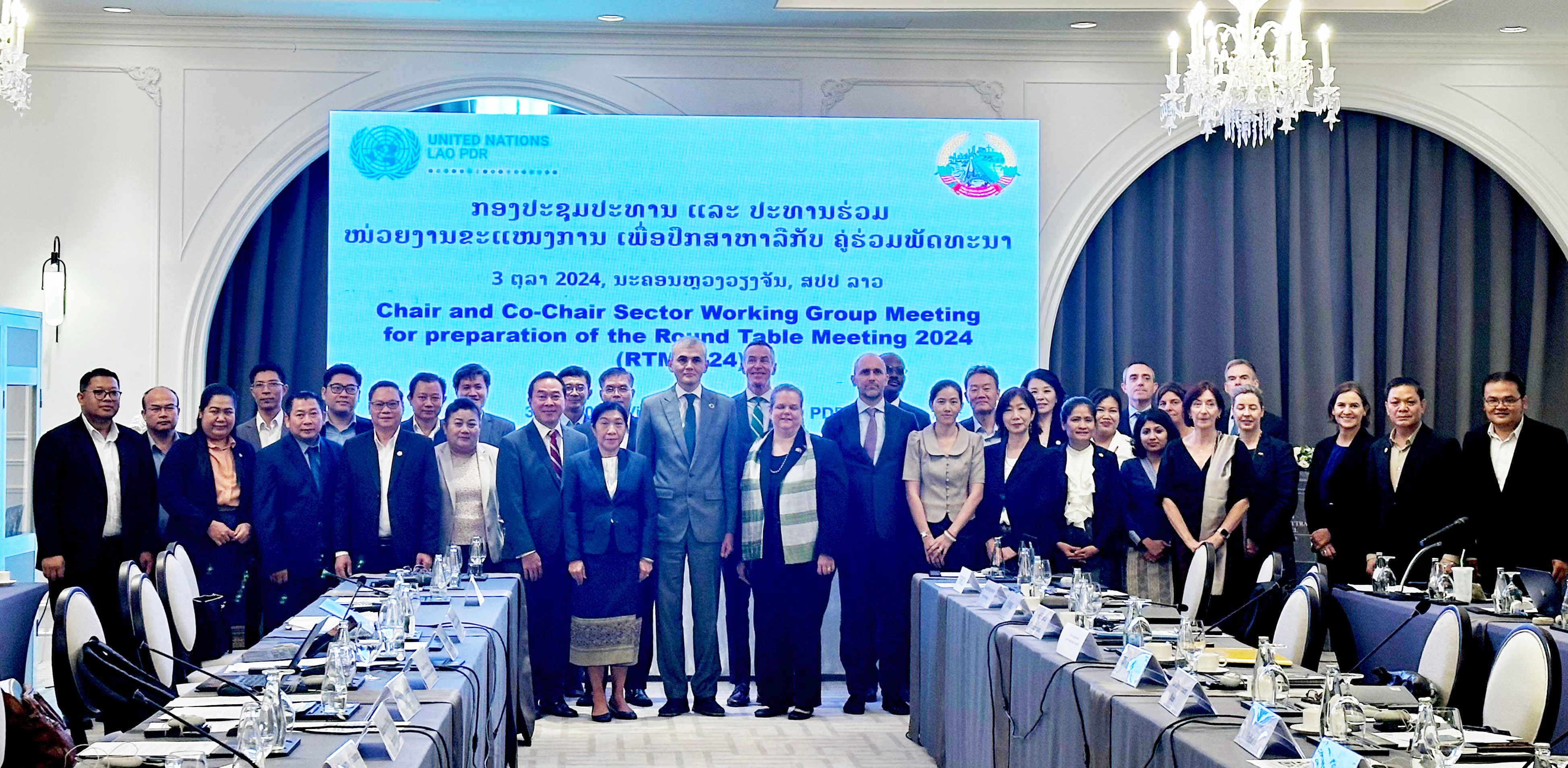 ກົມຮ່ວມມືກົນ, ກະຊວງແຜນການ ແລະ ການລົງທຶນ ຮ່ວມກັບ ອົງການສະຫະປະຊາຊາດ ປະຈຳ ສປປ ລາວ ໄດ້ຈັດກອງປະຊຸມປະທານ-ປະທານຮ່ວມ ໜ່ວຍງານຂະແໜງການ ເພື່ອປຶກສາຫາລືກັບ ຄູ່ຮ່ວມພັດທະນາ ທີ່ນະຄອນ ຫຼວງວຽງຈັນ, ໃນວັນທີ 03 ຕຸລາ 2024 ພາຍໃຕ້ການເປັນປະທານ ຂອງ ທ່ານ ນາງ ສີສົມບູນ ອຸນາວົງ ຫົວໜ້າກົມຮ່ວມມືສາກົນ ກະຊວງແຜນການ ແລະ ການລົງທຶນ ແລະ ທ່ານ ບັກໂຮເດຍ ເບີຄະນ໋ອຟ, ຜູ້ປະສານງານອົງການ ອົງການສະຫະປະຊາຊາດ ປະຈໍາ ສປປ ລາວ, ເຊີ່ງມີບັນດາທ່ານຫົວໜ້າຫ້ອງການ, ຫົວໜ້າກົມ, ຜູ້ຕາງໜ້າ ຈາກກະຊວງ ຂະ ແໜງການ ແລະ ຄູ່ຮ່ວມທະນາ, ບັນດາທ່ານເອກອັກຄະລັດຖະທູດ, ຫົວໜ້າອົງການຈັດຕັ້ງສາກົນ ໂດຍຕາງໜ້າ ໃຫ້ແກ່ ປະທານ-ປະທານຮ່ວມ ຂອງໜ່ວຍງານຂະແໜງການ ເພື່ອປືກສາຫາລືກັບຄູ່ຮ່ວມພັດທະນາ ເຂົ້າຮ່ວມເຂົ້າຮ່ວມ ຢ່າງພ້ອມພຽງ.